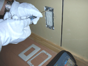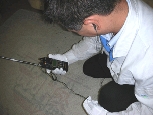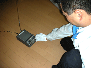 7.発信している位置を特定後、発信源を確認して、発信の事実を立会人確認のもと、盗聴発信機であることを確定します。 |